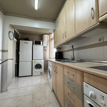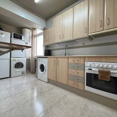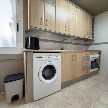 La cuina és independent, d’una mida generosa i completament equipada, amb gran capacitat d’emmagatzematge i espai suficient per cuinar amb total comoditat. El seu disseny funcional la converteix en un dels espais més pràctics de l’habitatge.