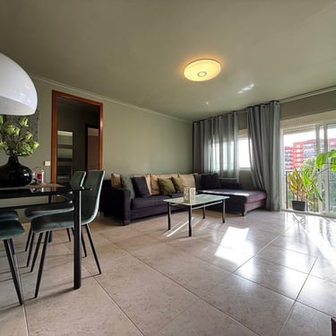 El saló menjador és ampli i confortable, amb accés directe a un balcó exterior i un gran finestral que, gràcies a la seva orientació sud, garanteix una llum natural excel·lent i sol durant gran part del dia. Un espai ideal per relaxar-se, rebre visites o gaudir de moments en família.