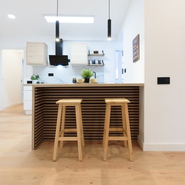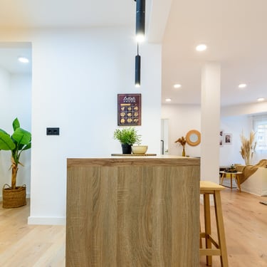 Barra de treball que separa visualment la zona de cuina del menjador.