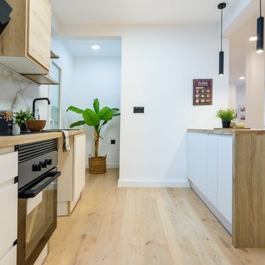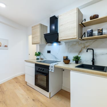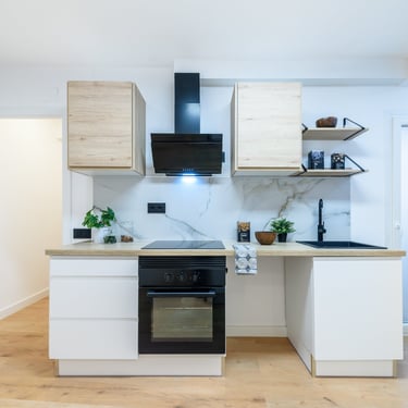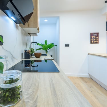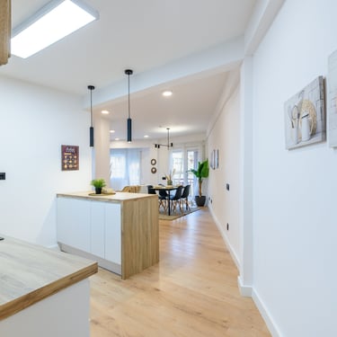 La zona de dia és un dels punts forts de la reforma. La cuina s’ha integrat amb el menjador i el saló en un únic espai diàfan i lluminós, creat per afavorir moments de convivència i confort. La cuina, dissenyada amb criteris estètics i funcionals, disposa de: