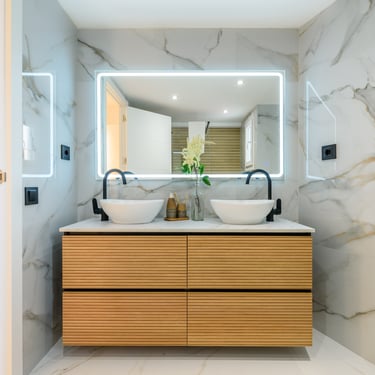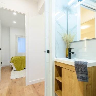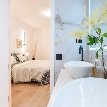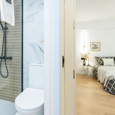 L’habitatge consta de 3 habitacions i 2 banys complets, distribuïts de manera equilibrada per maximitzar la privacitat i el benestar. Una de les habitacions és suite, amb bany integrat i espai ben aprofitat, ideal com a zona de descans personal. Els dos banys estan equipats amb dutxa ampla i acabats d’estètica actual, sanitaris de línies minimalistes, mampara de vidre, paviments porcellànics i detalls que marquen la diferència.