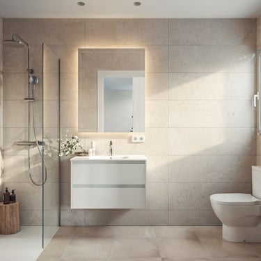 Disposa de dos banys complets amb ventilació natural, equipats amb dutxes XL, mampares de vidre i acabats de qualitat superior, seguint una línia estètica moderna, neta i molt actual.