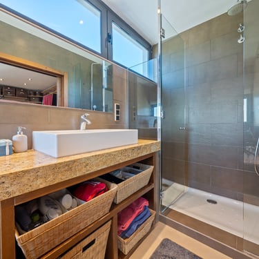 A la planta soterrani, s’ha creat un apartament independent amb habitacions, bany i la possibilitat d’instal·lar-hi una cuina pròpia. Ideal per a convidats, família o personal de servei, amb una entrada directa i total independència.