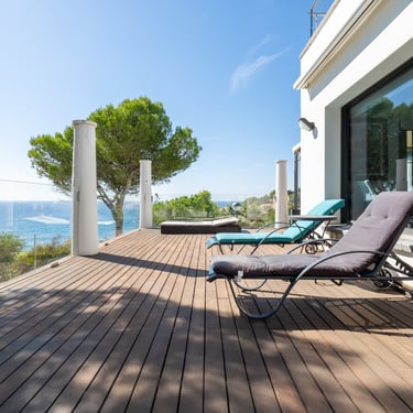 En un enclavament únic, elevat sobre el blau intens del Mediterrani, s’alça aquesta residència d’autor de 500 m², envoltada per un jardí privat de 1.000 m² que es fon amb l’horitzó. Una propietat on el luxe i la serenor s’uneixen per crear una experiència de vida inigualable.