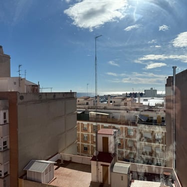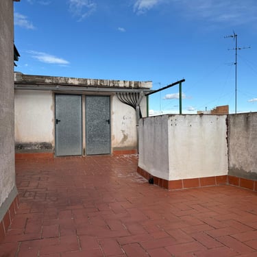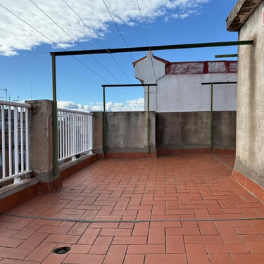 A la part superior de l’edifici hi ha una terrassa comunitària amb molt d’espai i bones vistes, ideal per estendre la roba o relaxar-se sota el cel obert.