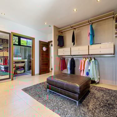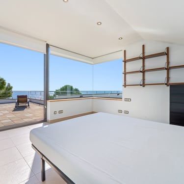Suite principal amb vestidor i bany integrat de línies avantguardistes.