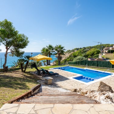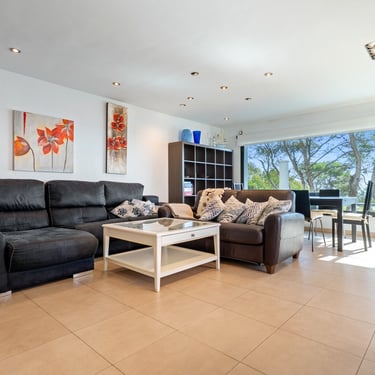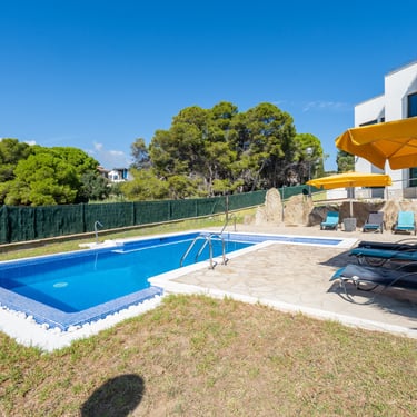 Sortida directa a un jardí terrassat amb piscina i zona chill‑out, perfectes per gaudir del clima del Baix Llobregat.
